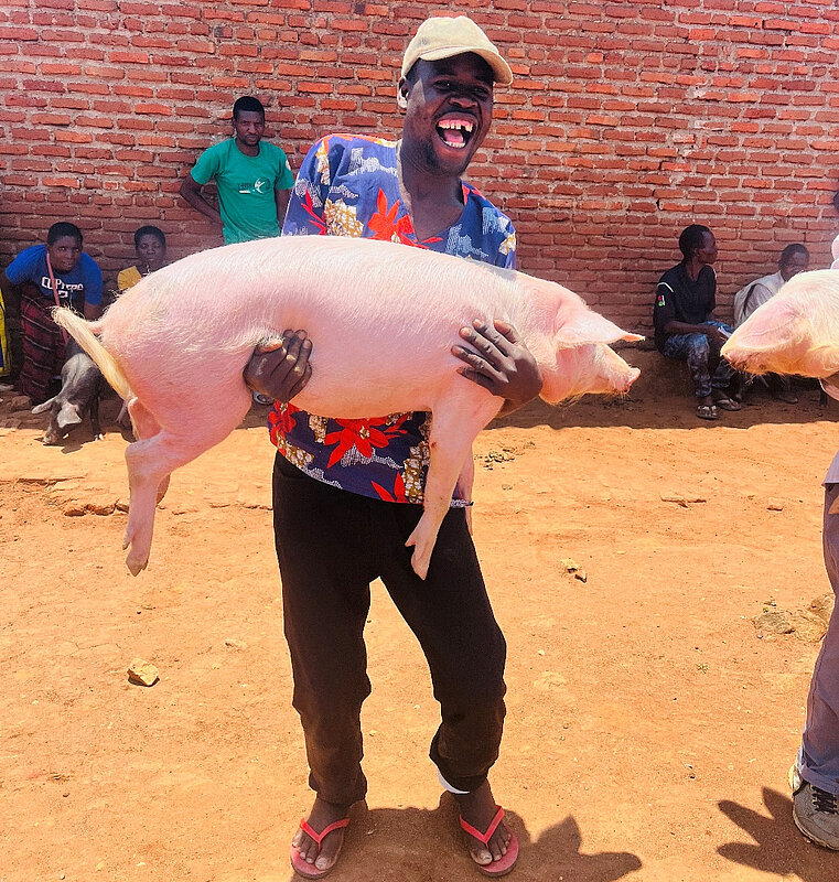 Beim Besuch einer Schweinefarm in Nkhoma lernten die Mitglieder, worauf bei der Tierzucht zu achten ist. Der Besitzer dieses Hofes hatte ebenfalls mit zwei Tieren angefangen, sein Betrieb war